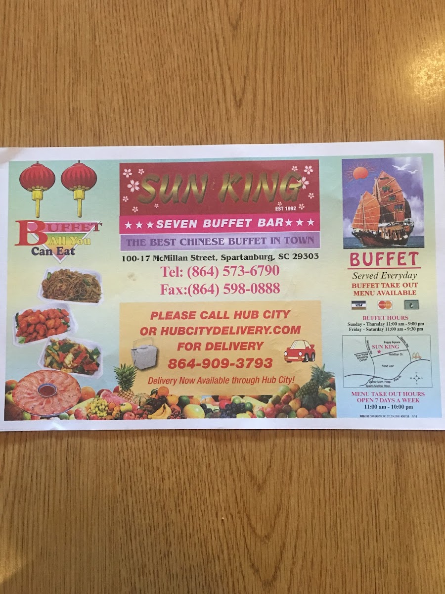Welcome to Sun King Chinese Restaurant, a culinary gem nestled in Spartanburg, SC. Renowned for its exceptional buffet, this establishment combines freshness and quality with remarkable value. Guests rave about the extensive selection—from golden, crispy wings to the irresistible Cheese Wontons, perfectly complemented by a sweet-and-sour sauce that tantalizes the taste buds.